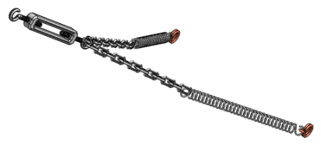 吊り上げ距離は、ターンバックルに掛けるチェーンの輪数で調整し、ターンバックルで微調整します。
