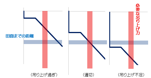 また、深い湿田の場合(耕盤が深すぎる場合)は、吊り上げきれない恐れがあります。