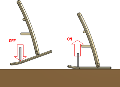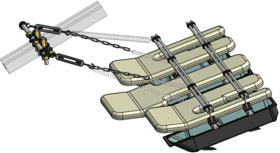 吊り上げ距離が大きくなって、バネ・チェーン・ターンバックル全体のたるみがなくなると、バネが伸び始め、同時に吊り上げ力が生まれます。バネの伸び始め(吊り上げ距離)は、チェーンの輪数とターンバックルで調整します。