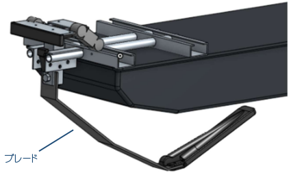 ワイヤーアジャスターでワイヤーの巻き取り・送り出しをして、ブレードの張り出し強さを設定します(インジケーターで接地具合を確認)。