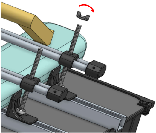 取付けパイプで田植え機フロートを挟み込んで、蝶ナットを締めて固定します。