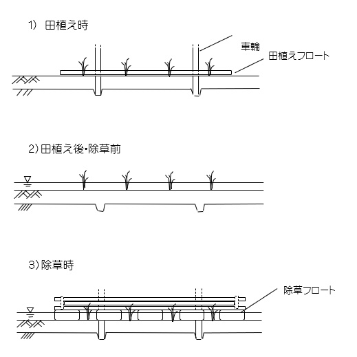 除草は、湛水状態での作業を想定しています。水深5㎝以上は確保してください。